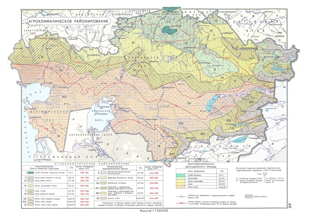 本数据集包含哈萨克斯坦农业湿润度指标分区图和农业气候区划图,农业湿润度指标分区图展示了基于湿润度指标划分的农业气候大区及亚区,并标注了具体的湿润度指标值;其图例包含各分区的图例符号、湿润度指标计算公式及参数定义。农业气候区划图展示了哈萨克斯坦的农业气候区划,依据水热系数和≥10°C积温指标,将区域划分为平原...
