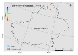 本数据采用2024年哨兵2号光学卫星数据为数据源,采样随机森林回归(RFR)方法构建新疆湖泊水体透明度遥感估算模型。数据为CGCS2000坐标系阿伯斯投影,精度为10米。数值系数为0.001,即数据像素值乘以0.001可得实际水体透明度(m)。